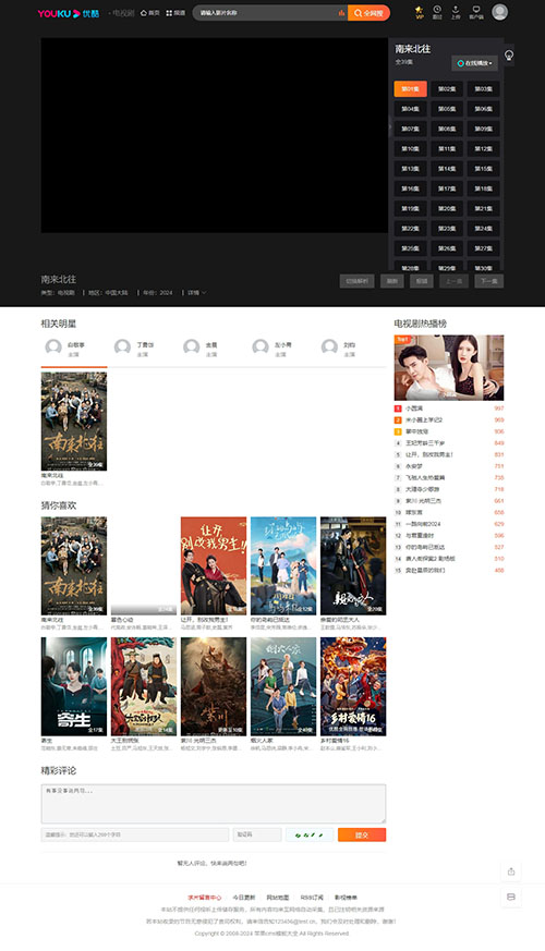 非常大气的一款仿优酷视频网站自适应模板,与之前发布的仿优酷1号相比,对首页、内容页、播放页都有调整变化,因此两个可以择优选择,喜欢哪套用哪套。