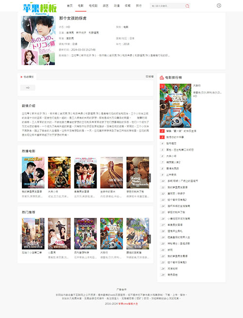 白色简约设计,首页banner及播放页设计非常出色,特别适用于影视站、电影站模板,代码兼顾pc、wap自适应访问,推荐模板!