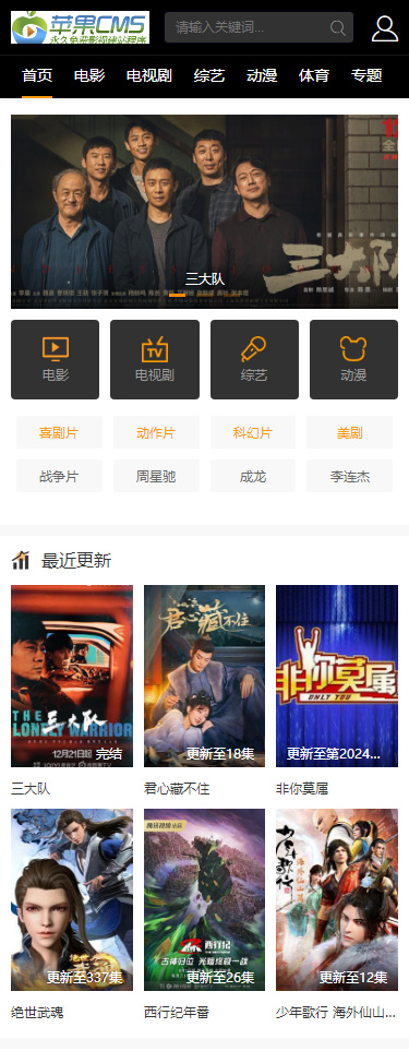 模板简介一款年代久远的经典自适应苹果cmsV10自适应模板,轻量简单明了在当时获得很多人的青睐。