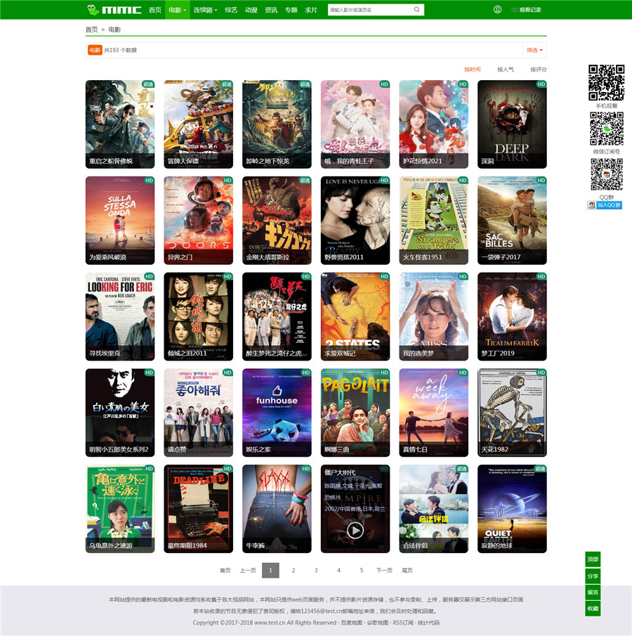 模板包含影视、新闻、留言、专题模块,页面很多就不一一截图了。