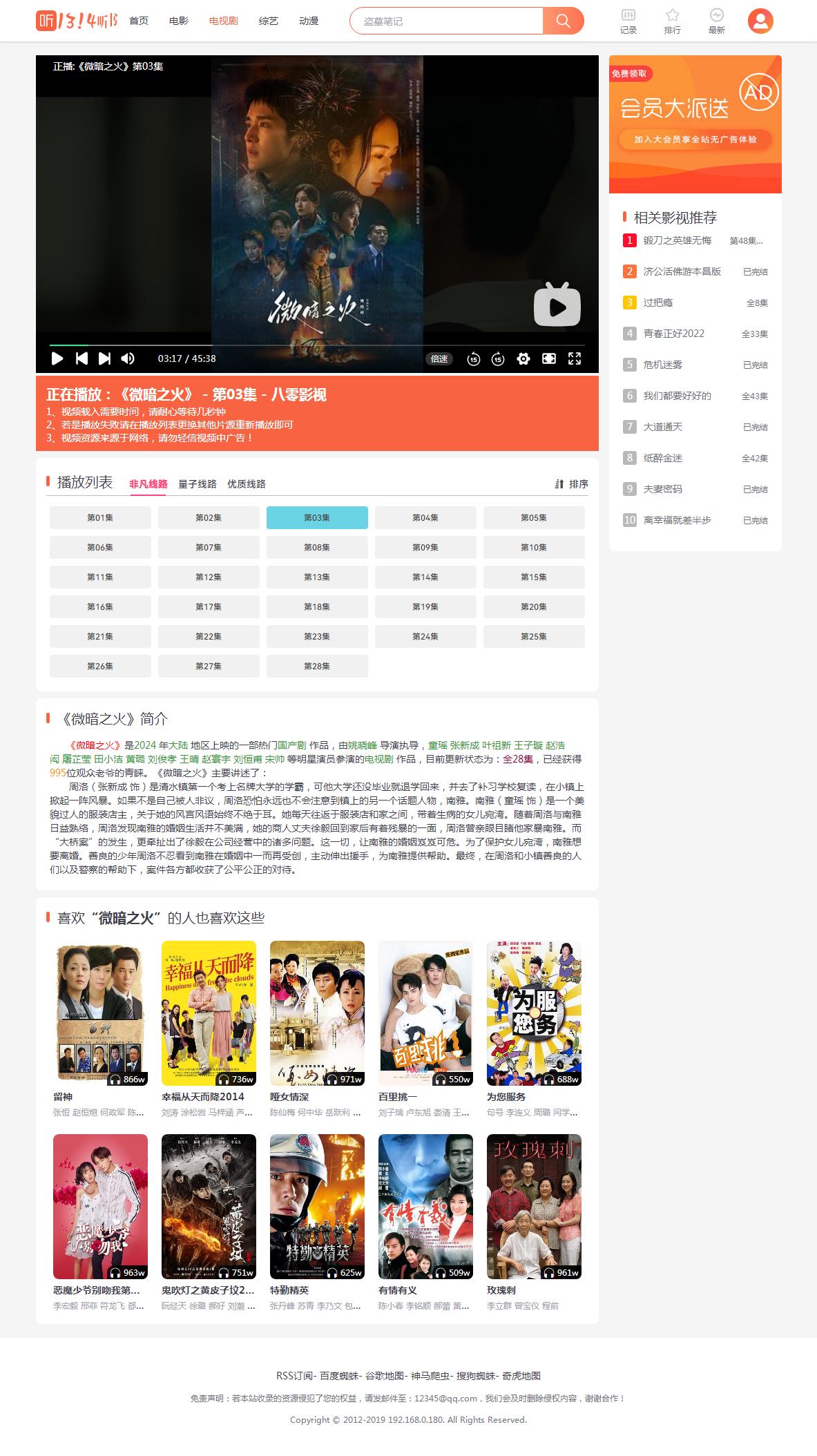 苹果cms V10一款经典漂亮UI仿芒果TV听书电脑和手机双端模板,