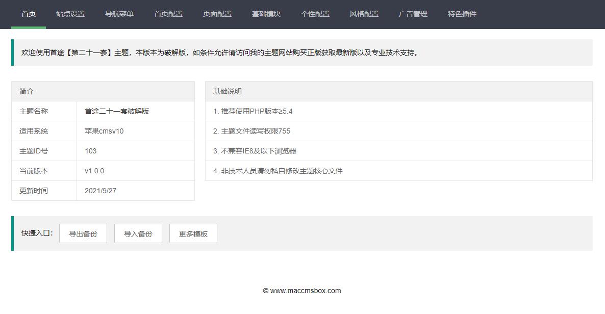 苹果cmsv10 mytheme自适应模板2号(破解版)