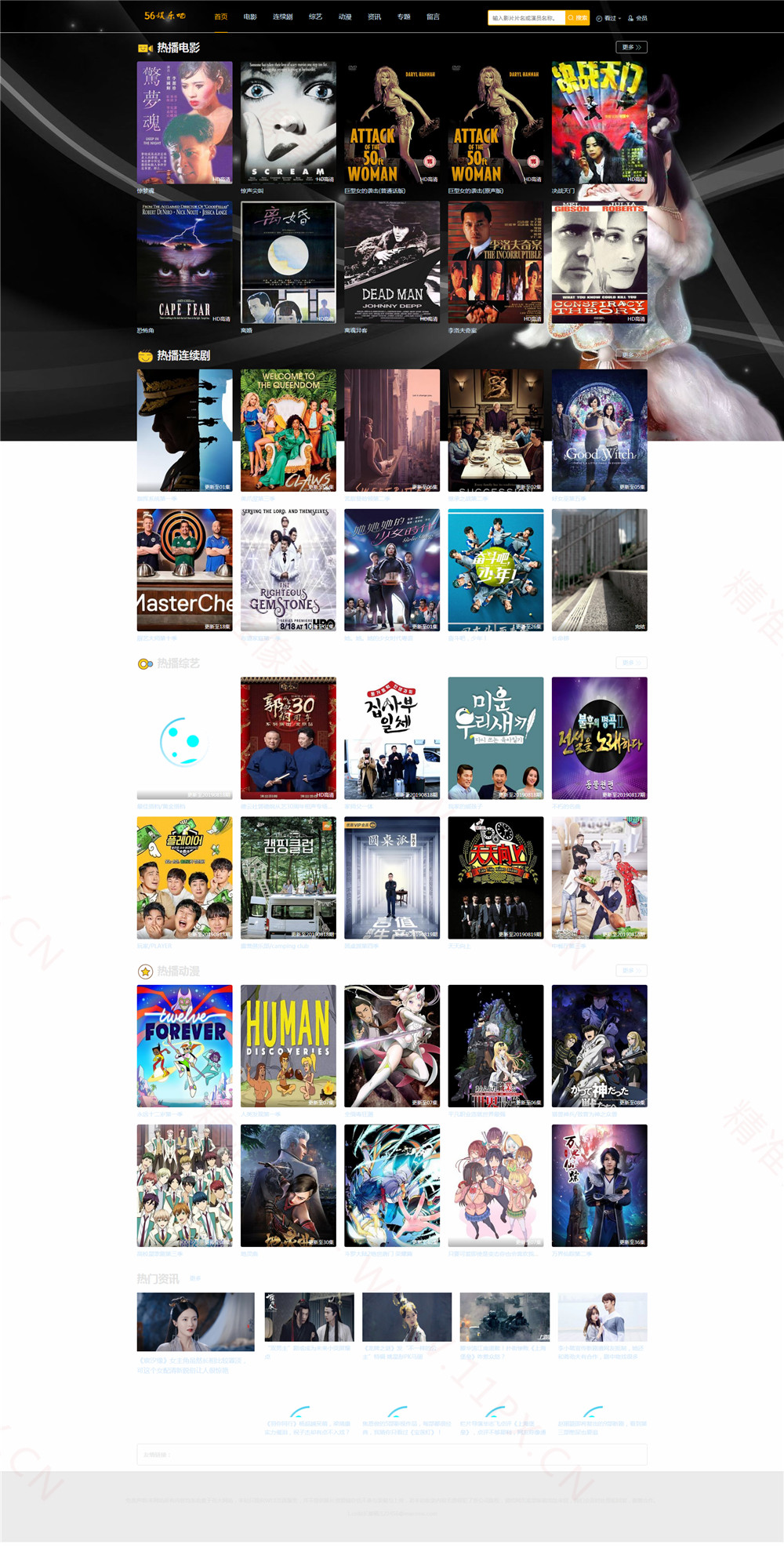 模板简介:亲测完美无错黑色卡通背景风格苹果CMS模板,模板分为首页、列表、播放页