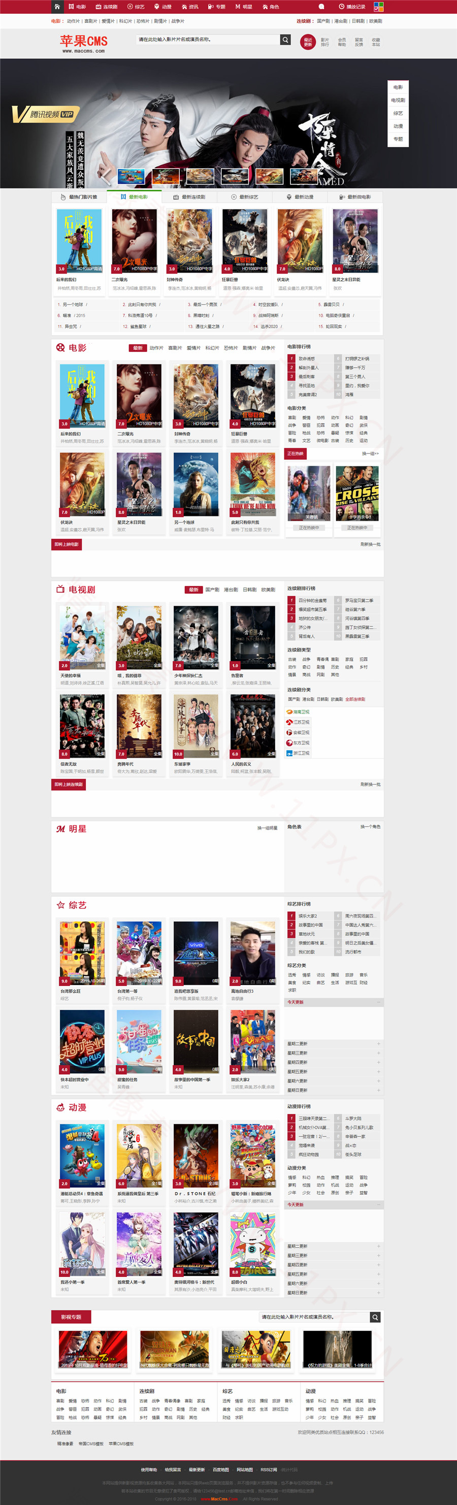苹果cmsV10简洁模板 超强SEO 会员中心 明星库 资讯 首涂第20套二开模板
