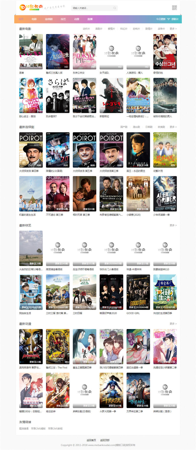 兼容版本: 苹果cms v10苹果cmsv10精美清新风格电脑PC端模板链接下载