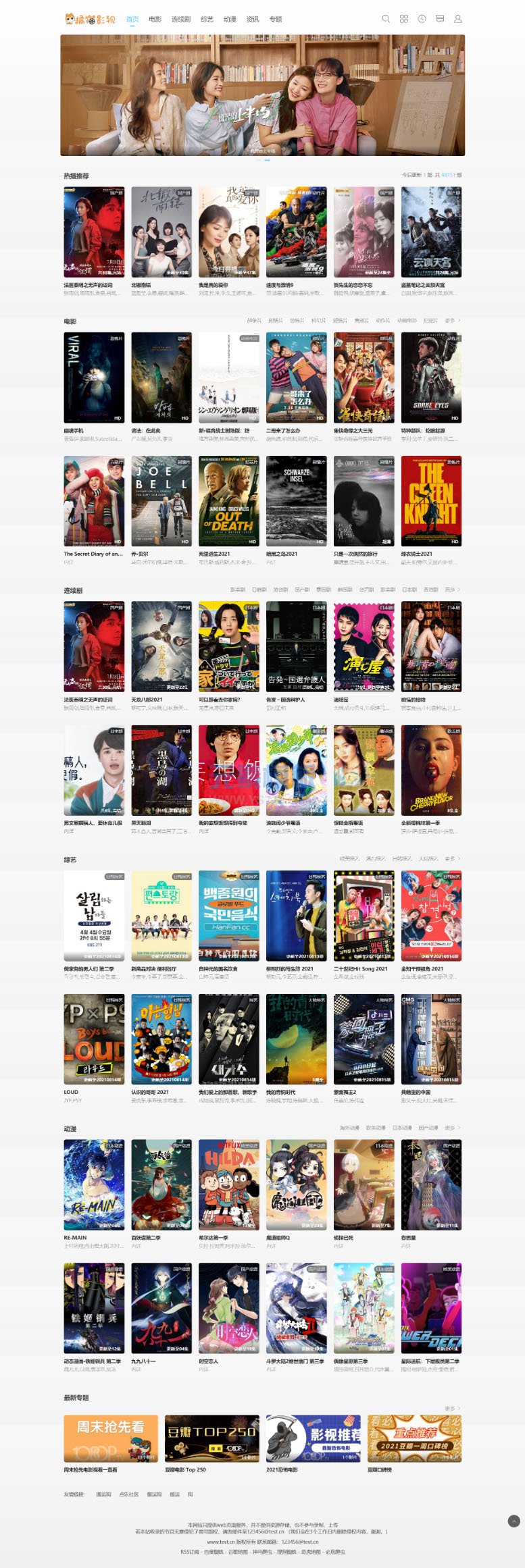 模板介绍苹果cmsV10模板为自适应一体化设计,多功能,支持专题、留言本、资讯、