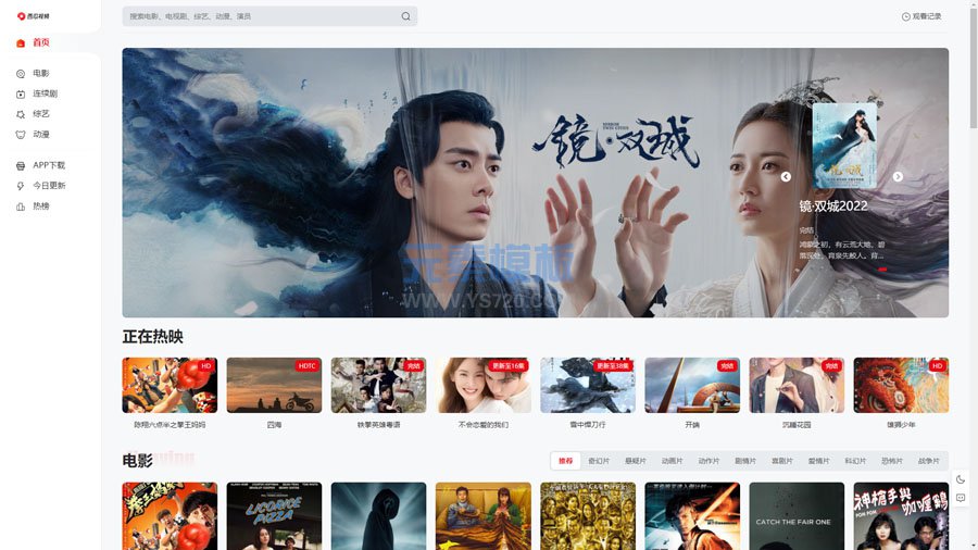 模板介绍苹果cmsV10仿电影先生2.0精美大气在线影视电影免费网站模板最近蛮火