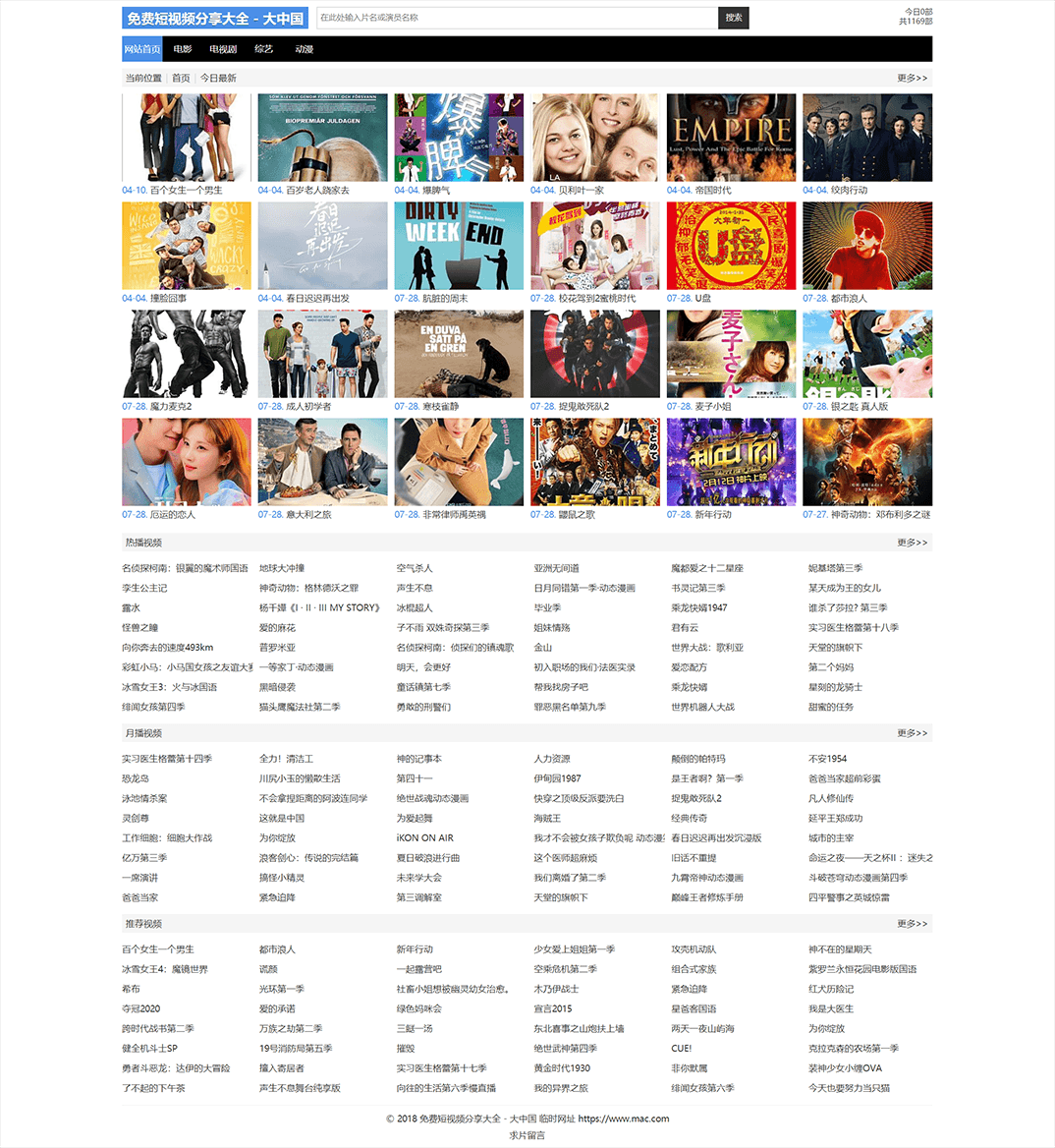 模板简介:苹果CMS V10影视模板 PC+WAP双模板 仿英皇CMS模板 MG