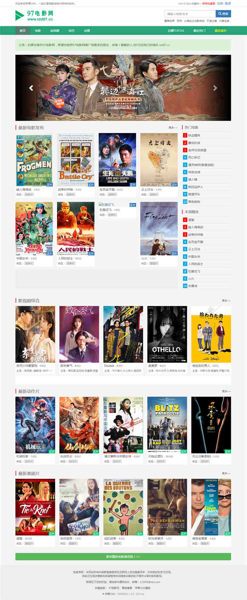 模板介绍:一款苹果CMSV8仿杰哥影视主题模板,电脑端,白色风格,UTF-8编码