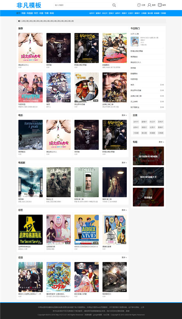 仿非凡在线影院网站 第17版 蓝色大气响应式电影海洋CMS模板