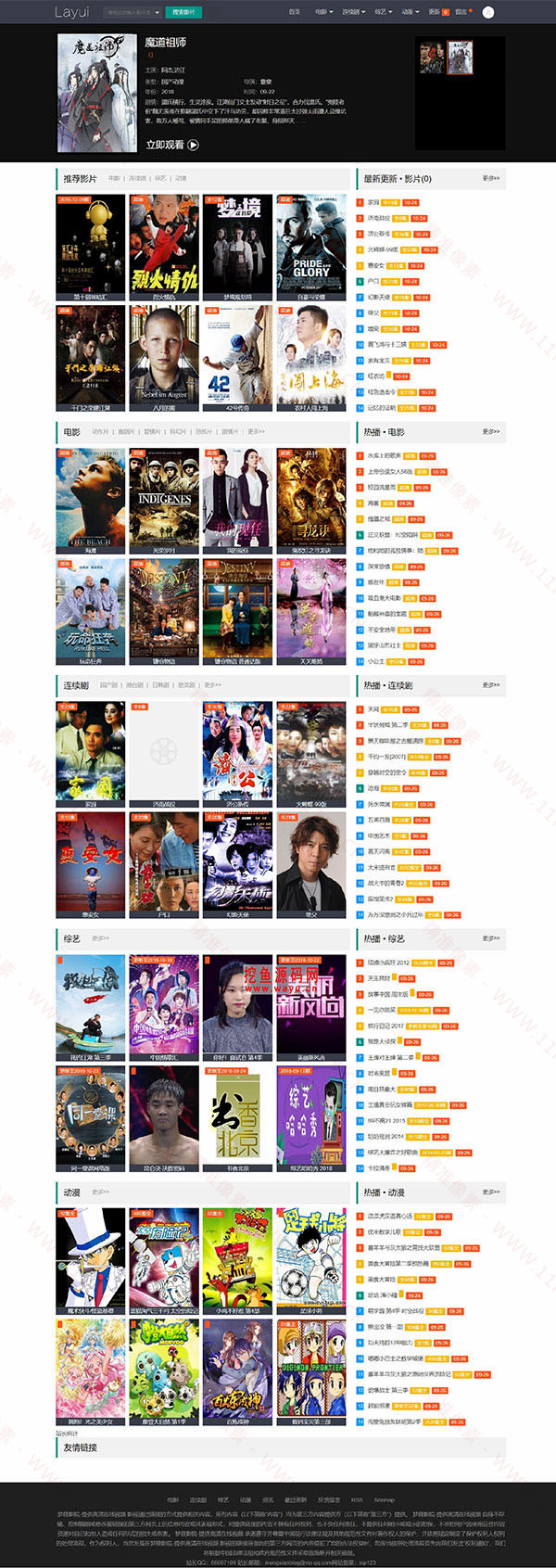 | 苹果CMS模板简介: 网站模板前端基于最新Layui2.30版本开发,结构化代码布局,模块化按需加载js组件,减少http请求,让你的网站速度狂飙 ,色调方面与后台相当匹配。 前台给人的第一感觉绝就清爽沉稳,你是不是也因为这个第一感觉点进来看的呢,是就对了,设计这款模板的目的就是如此。 苹果cms模板功能:内容页迅雷下载插件,继承了默认模板的下载功能上在做移动端自适应优化。 继承默认模板的rss全部模板如:baidu.xml 、google.xml , 继承默认会员中心基础上添加移动端响应式css, 支持前台导航、评论、留言本的用户头像显示, 完美支持试看功能,可做收费内容网站! 支持自定义页面更新影片列表大全的,若网站有当天有更新会在导航菜单的上显示数字数量,超过999个显示红点 移动端完美自适应,支持侧边弹出导航,展示用户头像信息和网站导航。 在线音乐解析插件,可搜索优酷音乐,网易音乐、qq音乐、酷我音乐盒的音乐免费在试听和下载mp3 影片海报图片使用Layui的图片懒加载,除了对滚动条的性能进行了美好的优化,也对图片的“当前屏”进行了高效计算,无惧于任何规模庞大的图片数量! 移动端双模式幻灯图,无幻灯图和有幻灯图,避免找不到幻灯图的尴尬情况。 资源截图: |