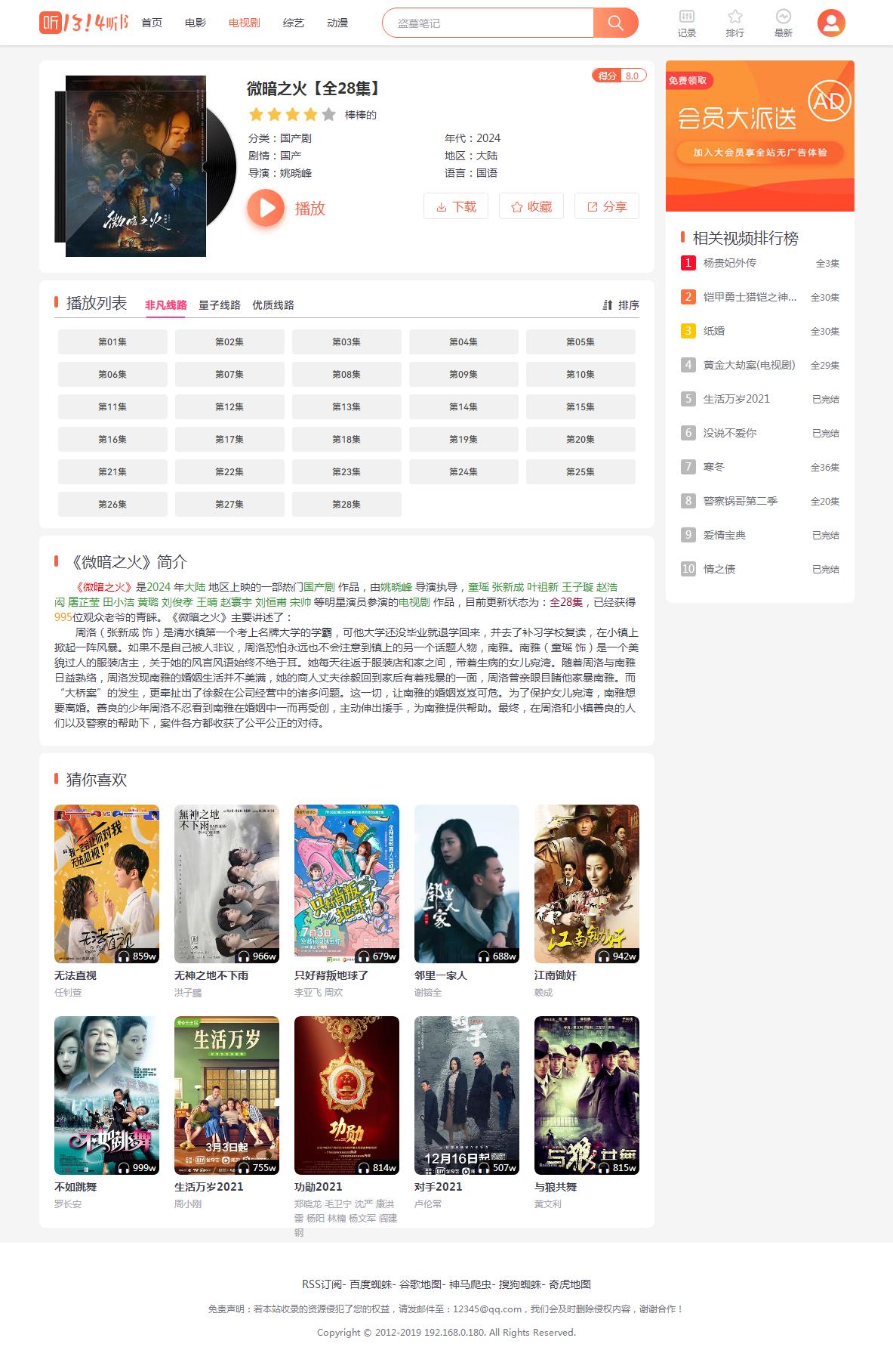 苹果cms V10一款经典漂亮UI仿芒果TV听书电脑和手机双端模板,