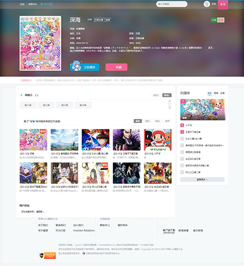 苹果cms模板v10仿动漫二次元B站(带pc/wap双端模板)删除模板后台版