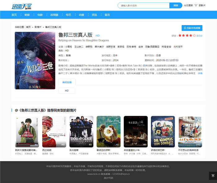 仿迅雷天堂苹果cms10模板,已测试完美无错,仿迅雷天堂主题模板,苹果CMSV10模板,自适应手机端。模板包含电影、资讯、留言板、搜索。