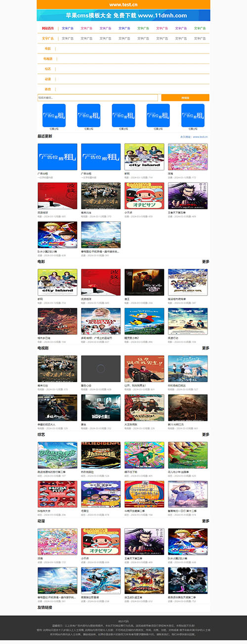 苹果cmsV10橙色电影站\x站自适应模板2号