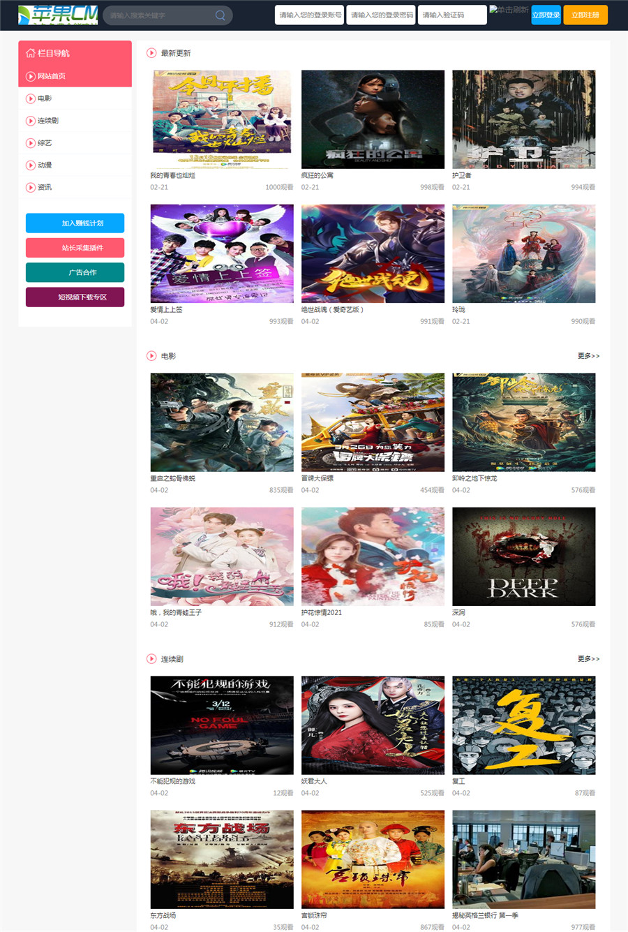 模板简介:综合影视门户网苹果CMS10模板是一款功能非常全面的模板,苹果CMSV