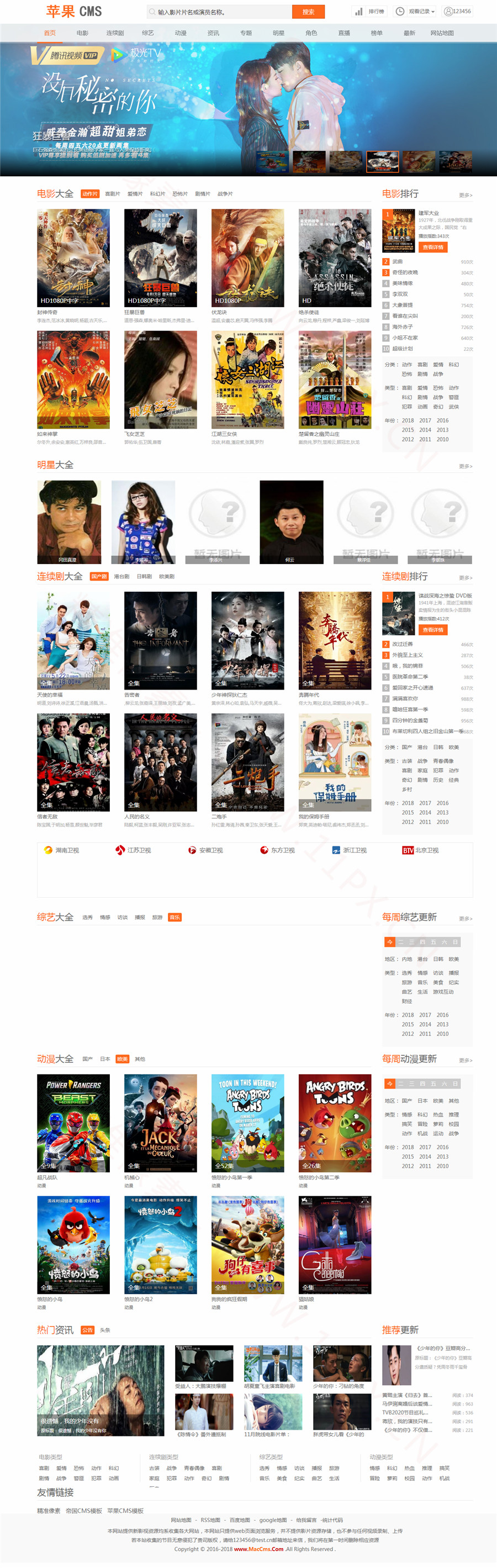 苹果cmsV10简洁模板 超强SEO 会员中心 明星库 资讯 首涂第20套二开模板