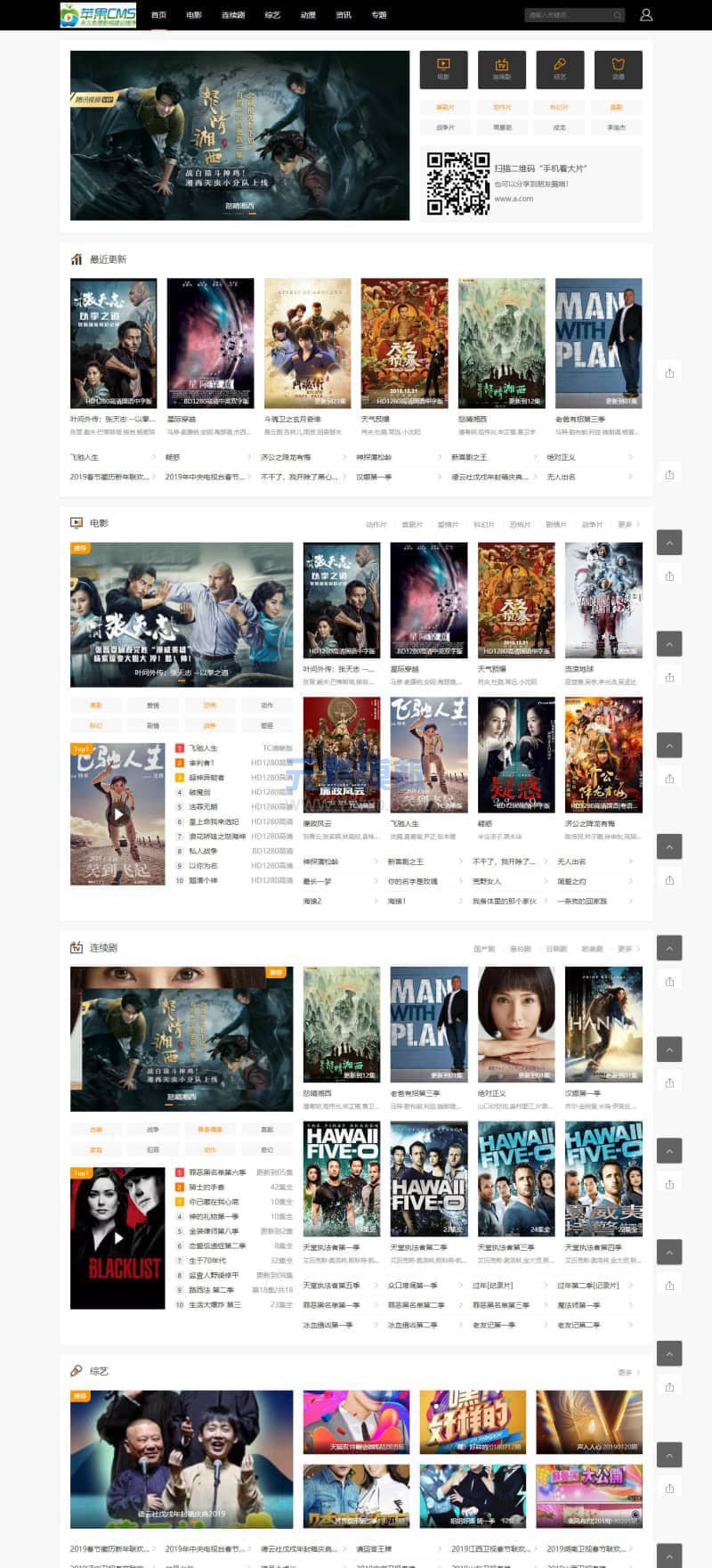 苹果CMS模板介绍电脑端和手机端一体化响应式模板,代码结构精简,操作简单,适合群