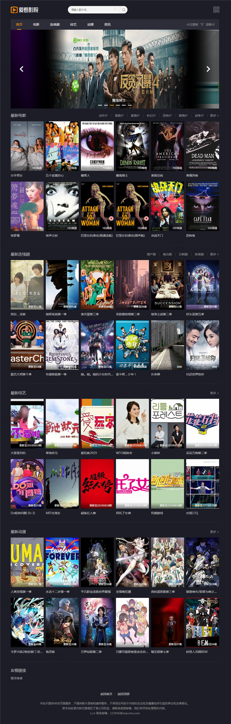苹果CMS V10暗黑色系动漫番剧小视频在线播放主题模板