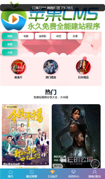 苹果cmsv10仿优酷视频网站模板(剔除弹窗版)