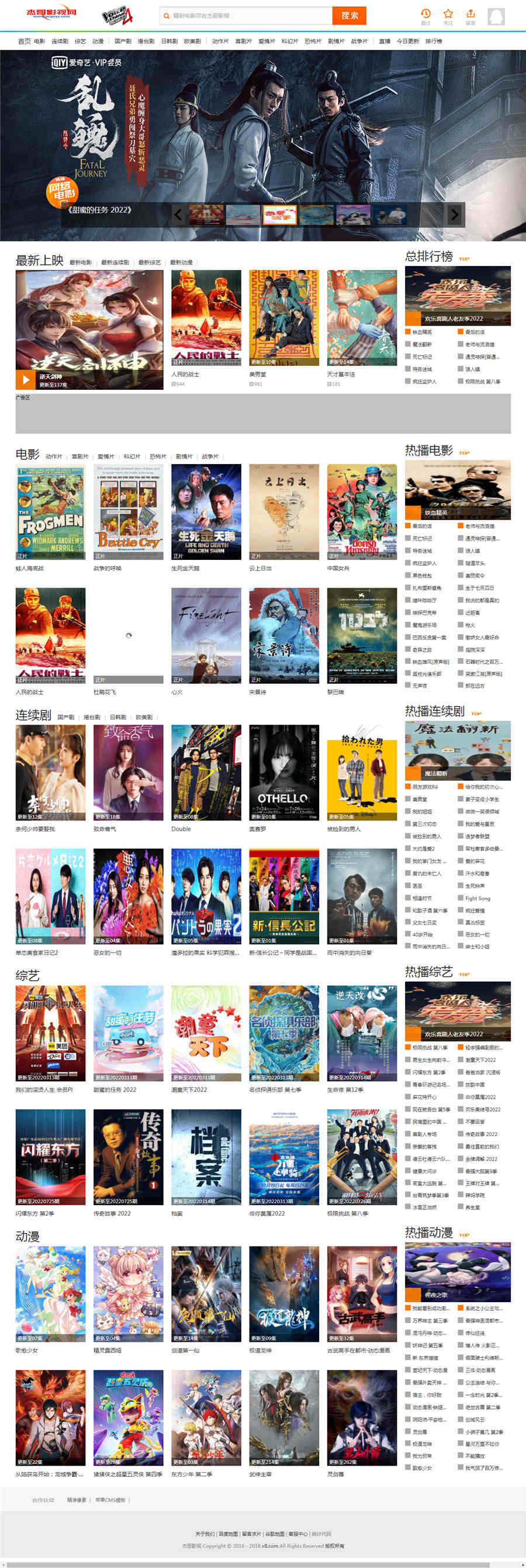 模板介绍:一款苹果CMSV8仿杰哥影视主题模板,电脑端,白色风格,UTF-8编码